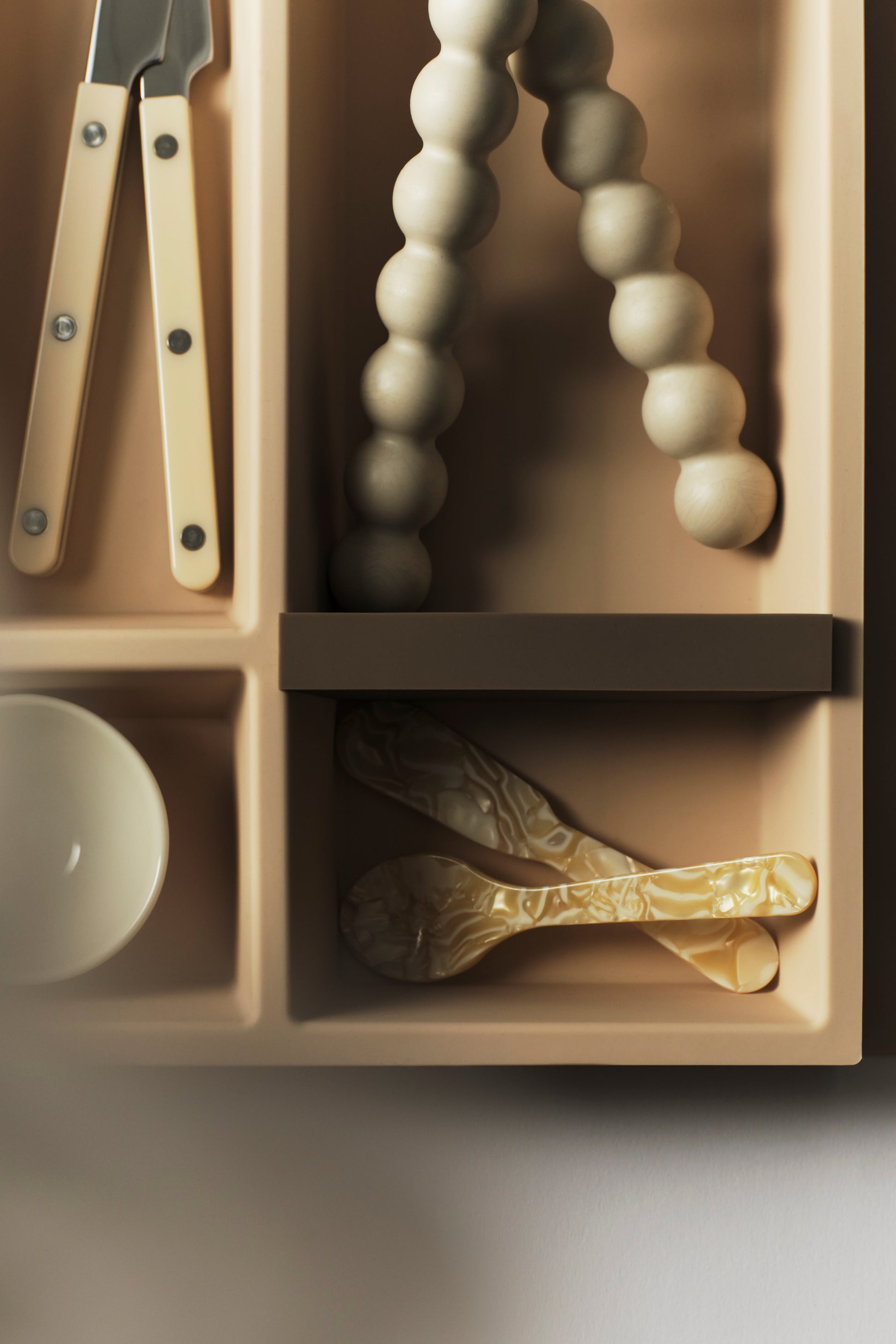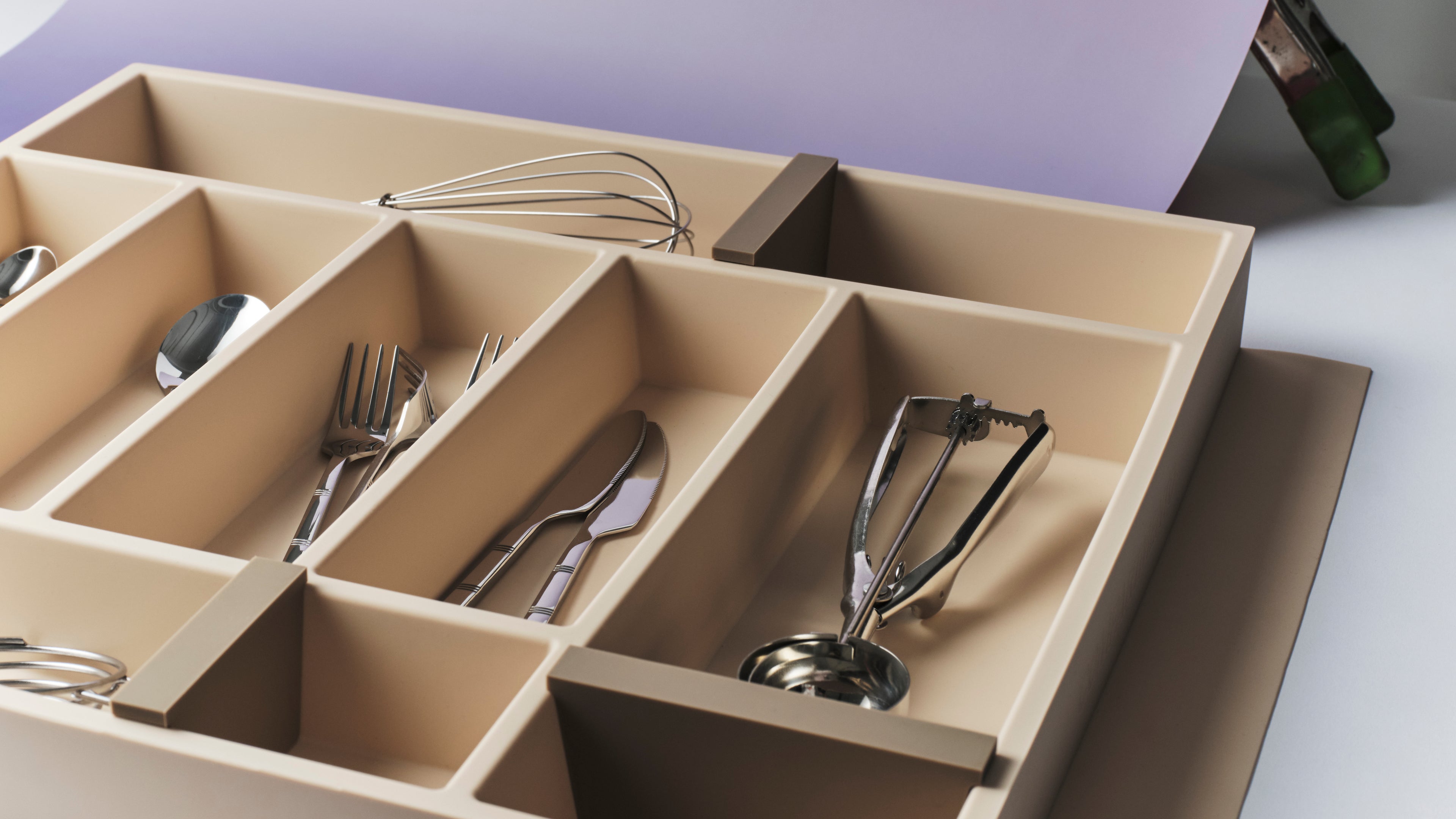 Each Vide inlay includes 3 magnetic moveable dividers to encourage numerous, practical layout reconfigurations. The divided sections can frame smaller, intentionally placed compartments to suit a variety of kitchen utensils, and all at one’s own discretion.